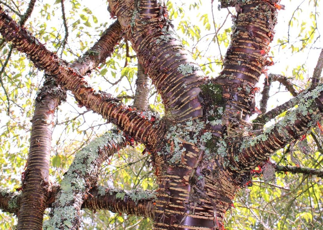 Le genre prunus représente une grande variété d’espèces arborées ou arbustives de toutes sortes. Il possède cependant certaines espèces d’arbre dont l’écorce apporte une couleur et / ou un graphisme intéressant en hiver.